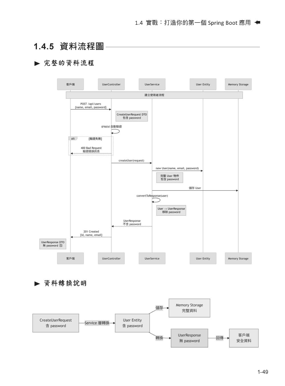 1.4 實戰:打造你的第一個 Spring Boot 應用 本節概要 1.4.1 專案需求分析 1.4.2 系統架構設計 1.4.3 資料模型設計 1.4.4 DTO 模式實作 1.4.5 資料流程圖 1.4.6 服務層實作 1.4.7 Controller 層實作 1.4.8 配置檔案 1.4.9 API 測試 1.4.10 安全性設計 1.4.11 關鍵技術說明 1.4.12 本節重點回顧 1.4.13 下一步 1.4.14 參考資源