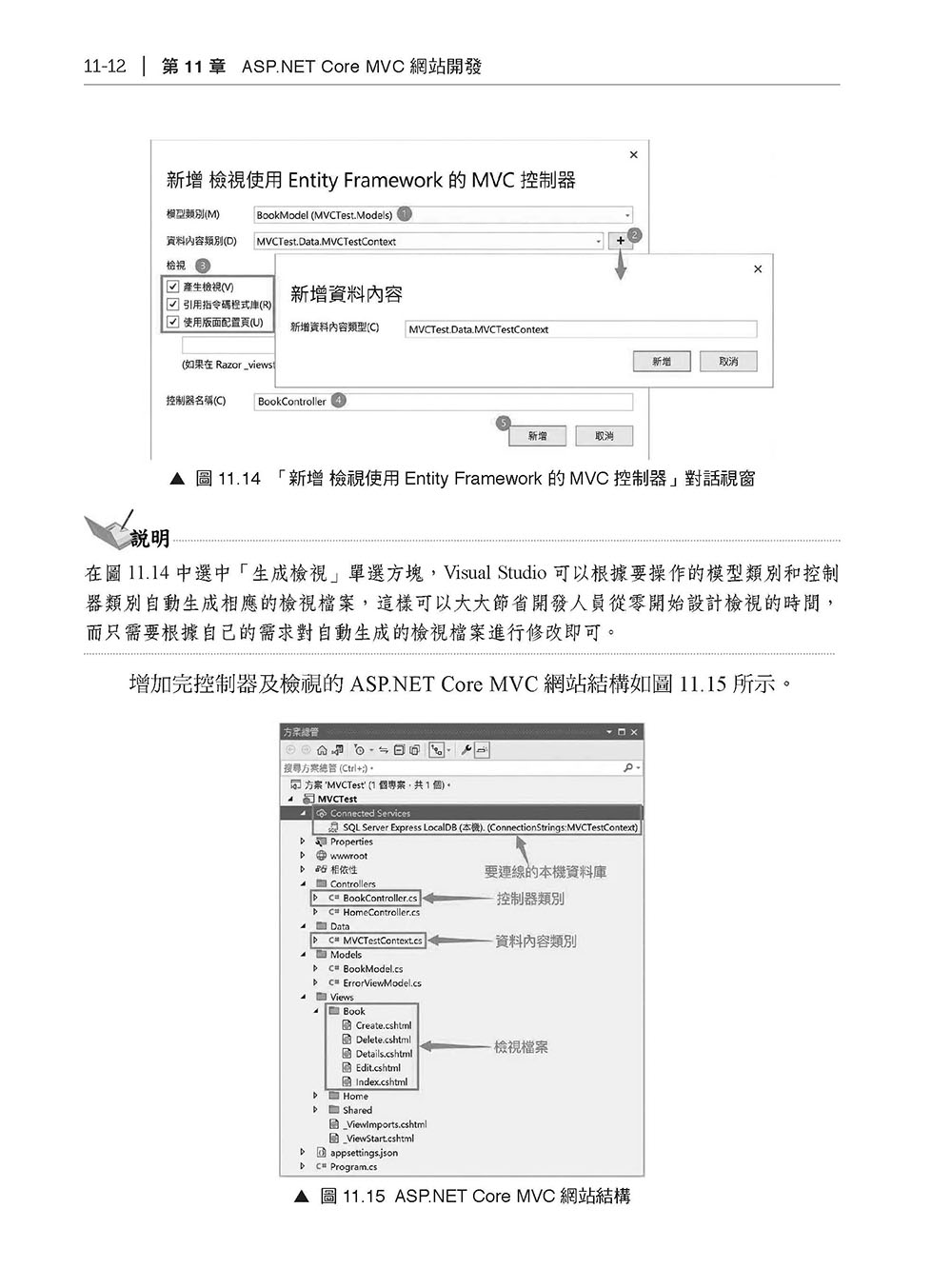 ►第11 章 ASP.NET Core MVC網站開發 11.1 MVC 基礎 11.1.1 MVC 簡介 11.1.2 模型、檢視和控制器 11.1.3 什麼是Routing 11.1.4 MVC 的請求過程 11.2 ASP.NET Core MVC 的實現過程 11.2.1 建立ASP.NET Core MVC網站 11.2.2 增加資料模型類別 11.2.3 增加控制器及檢視 11.2.4 資料庫設定及遷移 11.2.5 自定義MVC 路由設定規則 11.2.6 執行ASP.NET Core MVC網站 11.3 要 點 回 顧