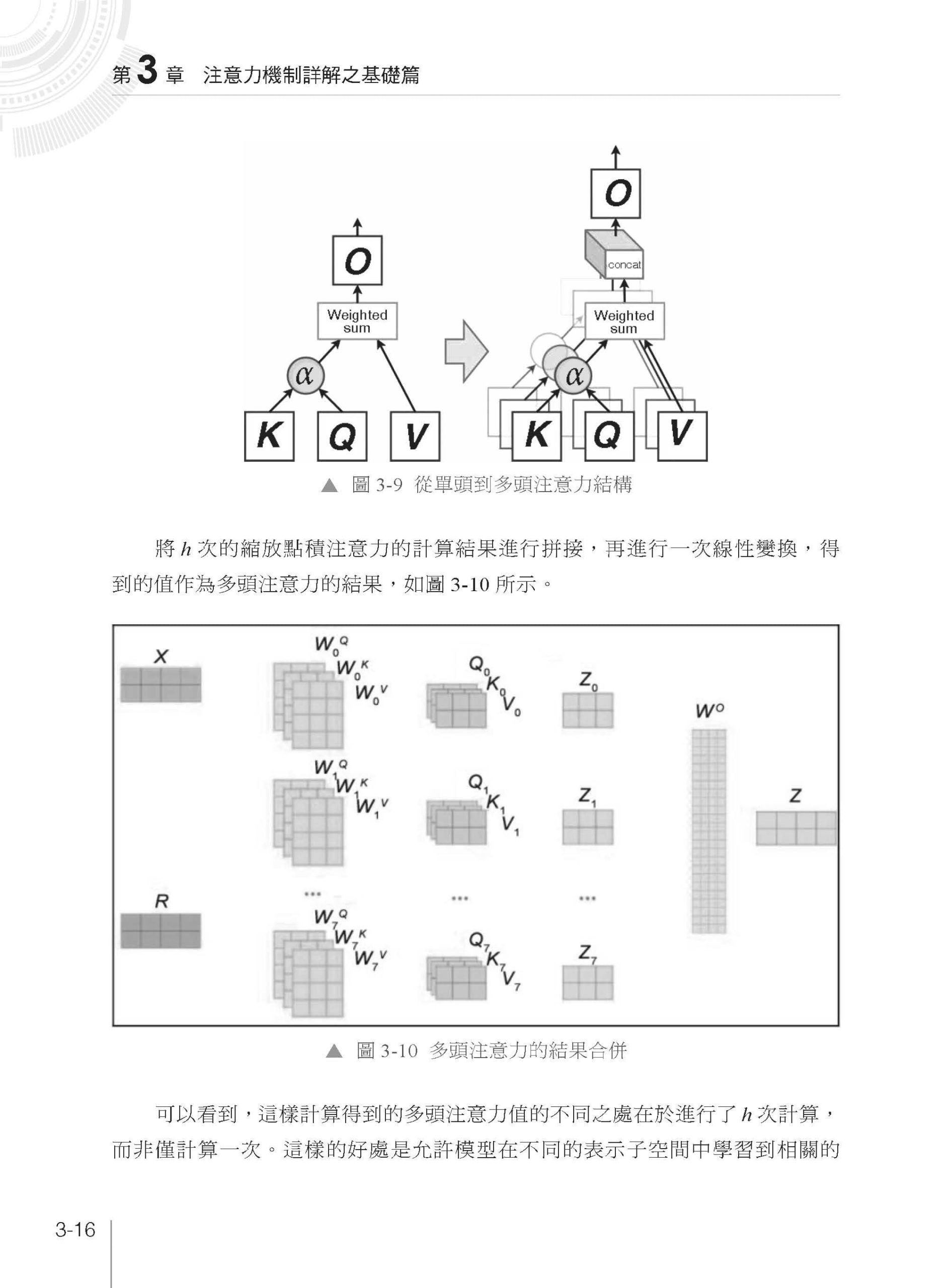 ▍本書內容安排 第1 章,高性能注意力與多模態融合。本章首先介紹以DeepSeek 為代表的高性能大模型的崛起,並深入探討注意力機制的發展,闡述其基本原理、發展變種以及在多架構中高性能的崛起。緊接著,我們探討多模態融合,包括其面臨的挑戰、融合策略與技術概覽、應用場景。最後,我們將展望多模態融合與注意力的未來發展方向,探討它們潛在的創新與前端技術。 第2 章,PyTorch 深度學習環境架設。本章指導讀者架設PyTorch 深度學習環境,包括Python 開發環境的安裝、PyTorch 2.0 的安裝與配置,以及多模態大模型DeepSeek 的用法。透過本章的學習,讀者將能夠熟悉PyTorch 的基本操作,為多模態融合與注意力機制的研究打下基礎。 第3 章,注意力機制詳解之基礎篇。注意力機制在深度學習中發揮著越來越重要的作用,本章將詳細介紹注意力機制的基本原理,包括自注意力機制、ticks 和Layer Normalization、多頭自注意力等關鍵概念。此外,我們還將透過編碼器這一應用實踐,展示注意力機制在實際任務中的運用。最後,透過一個實戰案例——自編碼架構的拼音中文字生成模型,讀者將進一步加深對注意力機制的理解。 第4 章,注意力機制詳解之進階篇。在基礎篇的基礎上,本章將進一步探討注意力機制的進階應用。我們將介紹自迴歸架構這一重要形態,包括旋轉位置編碼、新型啟動函數SwiGLU 等關鍵技術。此外,還將透過兩個實戰案例—無須位置表示的飯店評論情感判斷與基於自迴歸模型的飯店評論生成,展示注意力機制在文字處理任務中的強大能力。 第5 章,注意力機制詳解之高級篇。結合DeepSeek 基本架構,高級篇將深入探討注意力機制的更高級應用。我們將首先介紹替代前饋層的混合專家(MoE)模型,闡述其基本結構與實現方式。緊接著,透過兩個實戰案例—基於MoE 模型的情感分類與帶有MoE 的注意力模型,展示混合專家模型在提升注意力機制性能方面的潛力。最後,我們還將探討基於通道注意力的影像分類技術,進一步拓展注意力機制的應用領域。 第6 章,注意力機制詳解之調優篇。調優是提升深度學習模型性能的關鍵環節。本章將介紹針對注意力模型的多種最佳化方案,包括MQA 模型、MLA模型、GQA 模型以及差分注意力模型等。此外,還將透過一個實戰案例—基於MLA 的人類語音情感分類,展示最佳化方案在實際任務中的應用效果。而MLA注意力模型本身也是DeepSeek 取得成功的關鍵模組。 第7 章,旅遊特種兵迪士尼大作戰:DeepSeek API 呼叫與高精準路徑最佳化。本章將詳細介紹DeepSeek 大語言模型線上API 的呼叫方法。我們將從帳戶註冊開始,逐步講解API 金鑰的獲取、基礎對話流程的建立,並透過一個具體案例展示其強大的應用能力——旅遊特種兵迪士尼大作戰。 第8 章,廣告文案撰寫實戰:多模態DeepSeek 當地語系化部署與微調。本 章將實現基於多模態大模型DeepSeek 的當地語系化部署,並對模型的應用進行深入探索。針對Windows 系統環境下的DeepSeek-VL2,我們將詳細闡述額外安裝和編譯包的必要步驟,確保模型能夠在該系統上順利運行。為了進一步提升模型的調配性,使其能夠更進一步地服務於特定的輸出任務,我們深入講解了PEFT(參數高效微調)與LoRA(低秩調配)這兩種先進的微調方法。透過這些精細化的調整和最佳化,我們在推斷階段獲得了顯著成效,並完成了廣告文案撰寫的實戰案例。 第9~15 章,多模態大模型應用程式開發實戰。這7 章分別探討注意力與特徵融合在不同領域的應用範式與實戰案例。從Diffusion 可控影像生成到多模態圖文理解與問答,再到交叉注意力語音轉換和DeepSeek 智慧客服應用程式開發等任務,我們將詳細闡述注意力與特徵融合技術的實現細節與應用效果。透過影像生成、圖文問答、語音轉換、特徵壓縮、影像編碼、視訊分類、智慧客服等實戰案例的學習,讀者將能夠更深入地理解注意力與特徵融合在實際問題中的解決方案與實現過程。